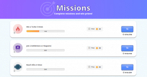 - Мисии: Дневни задачи, които насърчават потребителите да бъдат по-активни и да изпълняват креативни предизвикателства.